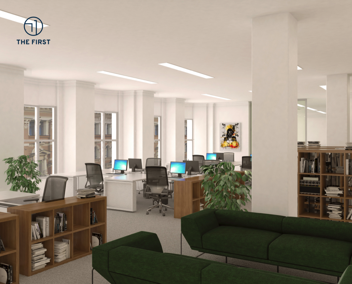 The First -toimistotalo on saneerattu täysin ja uudistettu vastaamaan nykyajan vaatimuksia. Kiinteistö on yhdistelmä edustavuutta sekä toimistorakennuksen toimivuutta.