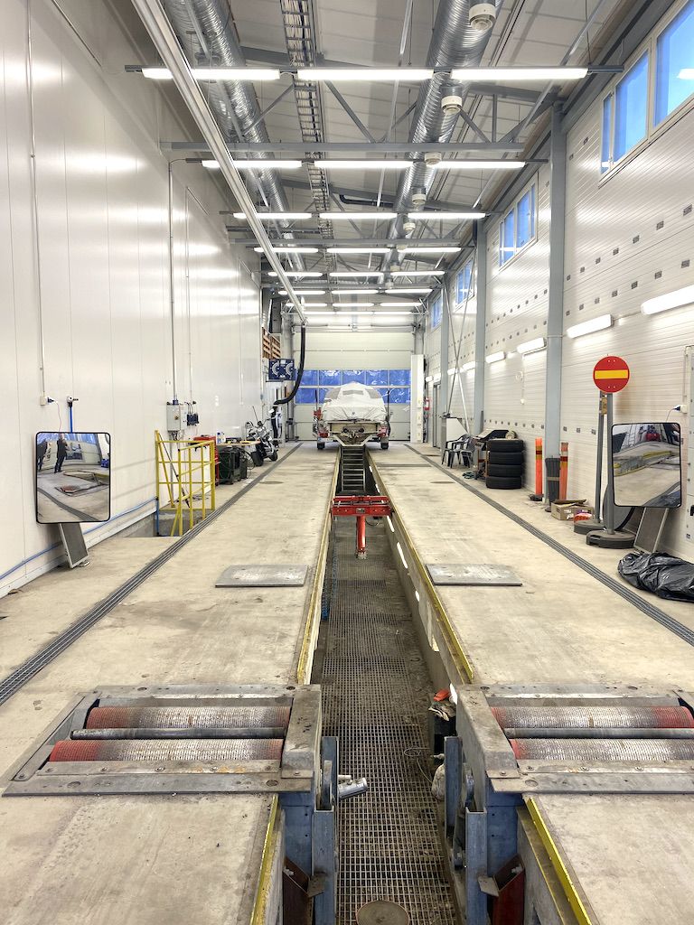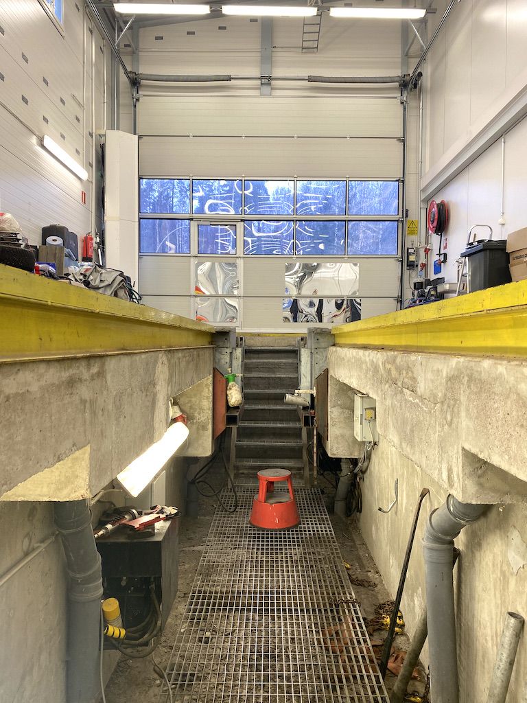 Hyväkuntoisessa läpiajettavassa tilassa on 25 metrin pituinen rasvamonttu ja tila on hyväksytty raskaan kaluston katsastusasemaksi. Lisäksi tilassa on yksi toimistoksi tai taukotilaksi soveltuva huone ja wc.