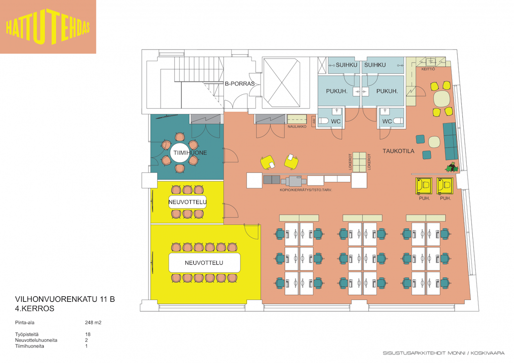 Vuokrataan muuttovalmis toimistotila Sörnäisten Hattutehtaan 4. kerroksessa. Tilassa on hyvin toimiva pohjaratkaisu, johon kuuluu neuvotteluhuoneita, avotyötilaa, moderni keittiö sekä suihku- ja pukeutumistilat. Siististi remontoituun tilaan luo mukavaa ja valoisaa tunnelmaa isot ikkunat.