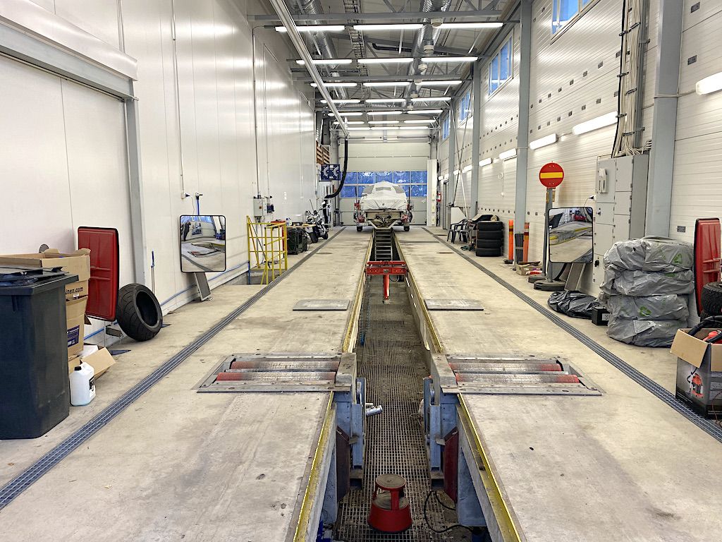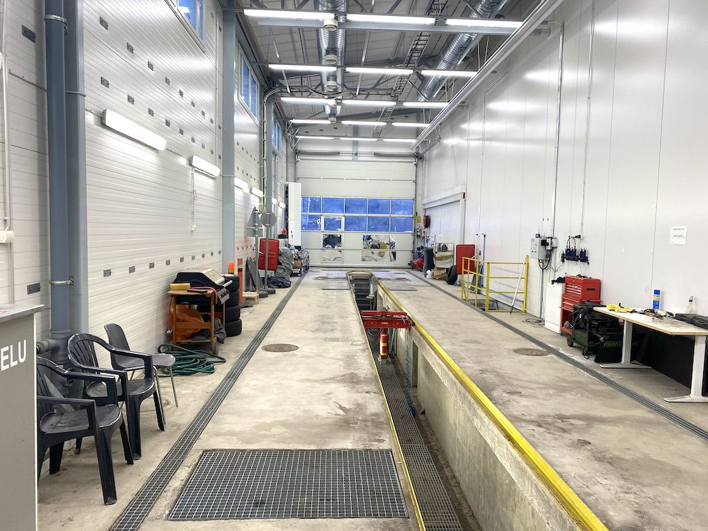 Hyväkuntoisessa läpiajettavassa tilassa on 25 metrin pituinen rasvamonttu ja tila on hyväksytty raskaan kaluston katsastusasemaksi. Lisäksi tilassa on yksi toimistoksi tai taukotilaksi soveltuva huone ja wc.