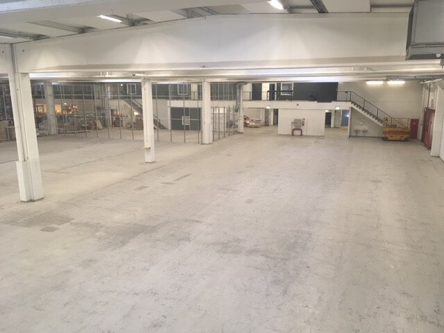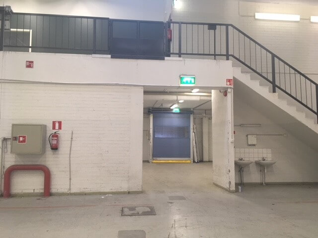 Korkea varasto (vapaa korkeus 6m) on selkeää tila, jossa on lastauslaituri ja nosto-ovi. Toimitila on toiminut ennen tapahtuma-alan toimijan varastona.