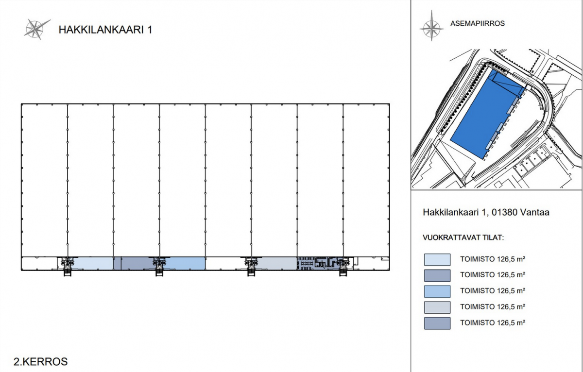 Kiinteistön 2. kerroksesta mahdollista vuokrata toimistotilaa.
