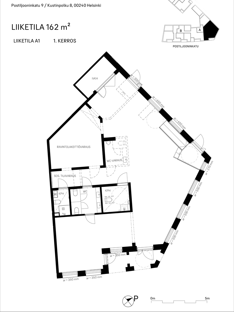 Vuokrataan liiketila 162 m² Postiljooninkatu 9, Postipuisto, Helsinki