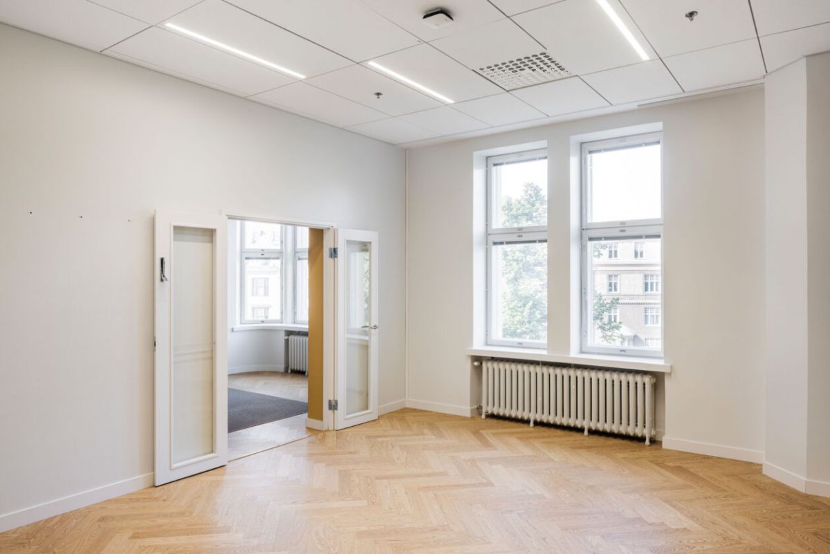 Vuokrataan upea muuttovalmis toimisto puistonäkymillä. Hyväkuntoisessa läpitalon toimistossa on erkkeri ikkunat ja kalanruotoparketti.